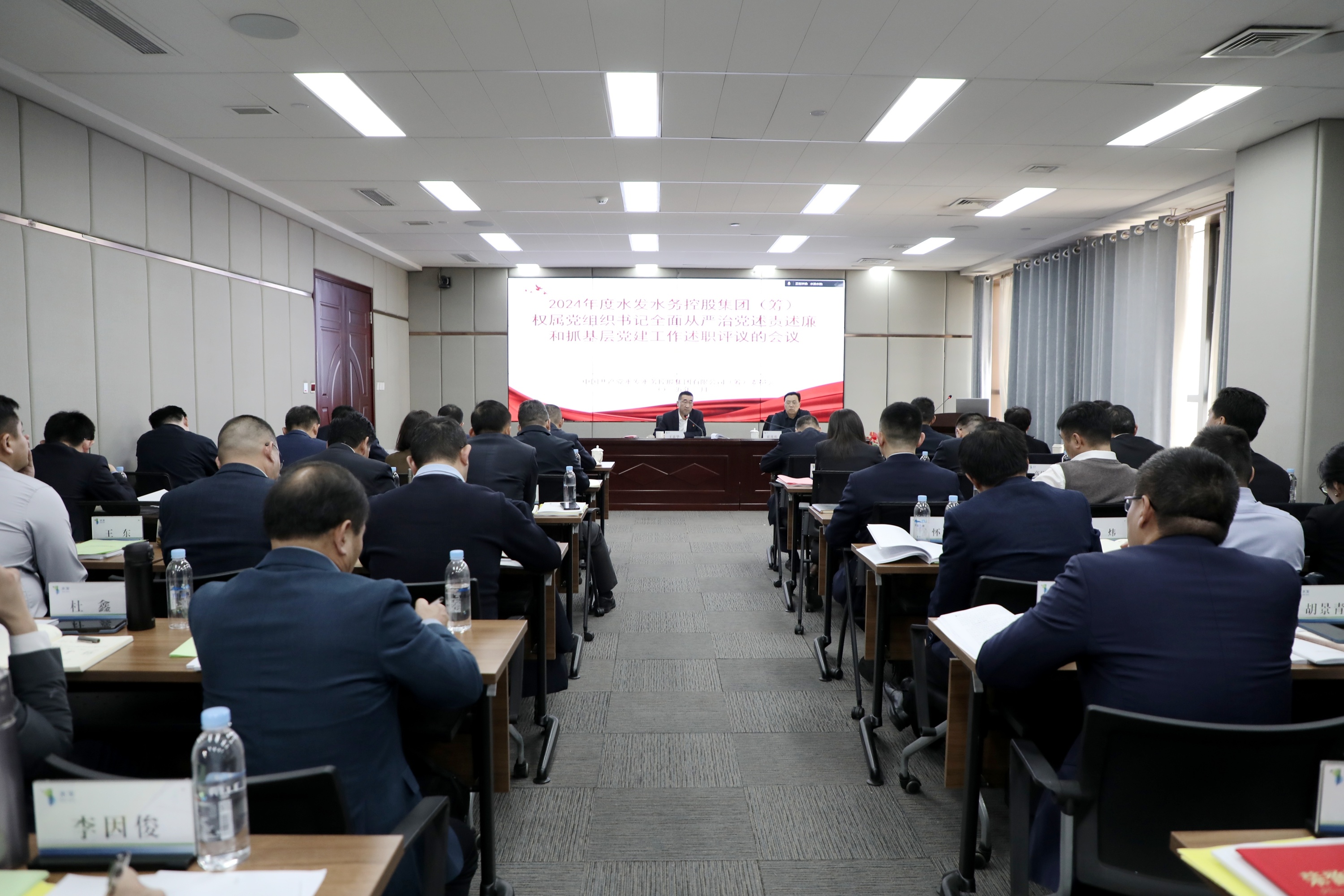 2月21日,水發(fā)水控集團(tuán)召開會(huì)議,分別聽取權(quán)屬公司黨組織書記2024年度全面從嚴(yán)治黨述責(zé)述廉和抓基層黨建工作述職,并進(jìn)行評(píng)議。集團(tuán)黨委書記、董事長(zhǎng)王忠華主持會(huì)議并講話,水發(fā)集團(tuán)黨群宣傳部(統(tǒng)戰(zhàn)部)部長(zhǎng)霍連慶到會(huì)指導(dǎo)。