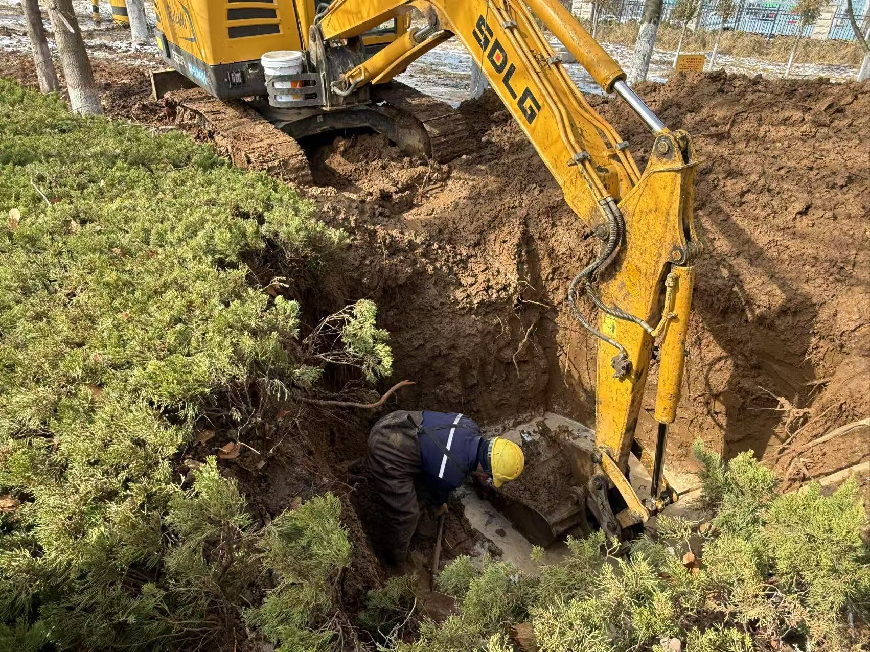 3月2日晚,嬴城水務(wù)巡察人員發(fā)現(xiàn)萊城大道重工東門主管道地段存在路面積水情況,經(jīng)現(xiàn)場查看,初步確認(rèn)管線凍裂漏水。夜晚持續(xù)降雪,氣溫降至零下4°C,為避免路面積水結(jié)冰影響周邊企業(yè)居民生產(chǎn)生活用水,維修人員決定連夜掘地?fù)屝?。冰冷刺骨的泥水中,維修人員持續(xù)奮戰(zhàn)十余個(gè)小時(shí)將漏水管線修復(fù)完畢,跑出了雪夜搶修的“水發(fā)速度”。