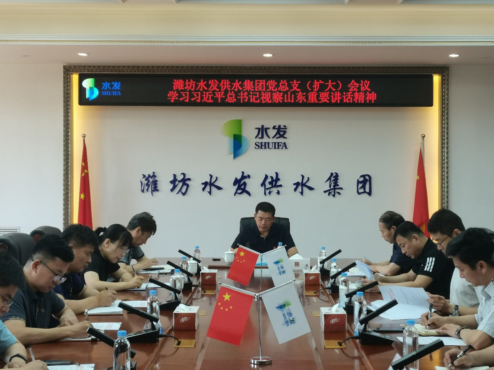 5月28日,濰坊水發(fā)供水集團(tuán)黨總支召開擴(kuò)大會議,傳達(dá)學(xué)習(xí)習(xí)近平總書記視察山東重要講話重要指示精神,認(rèn)真落實(shí)水發(fā)集團(tuán)黨委、水發(fā)水控集團(tuán)黨委理論學(xué)習(xí)中心組專題會議部署要求,研究貫徹落實(shí)意見。供水集團(tuán)黨總支委員、領(lǐng)導(dǎo)班子、中層以上黨員干部參加會議。